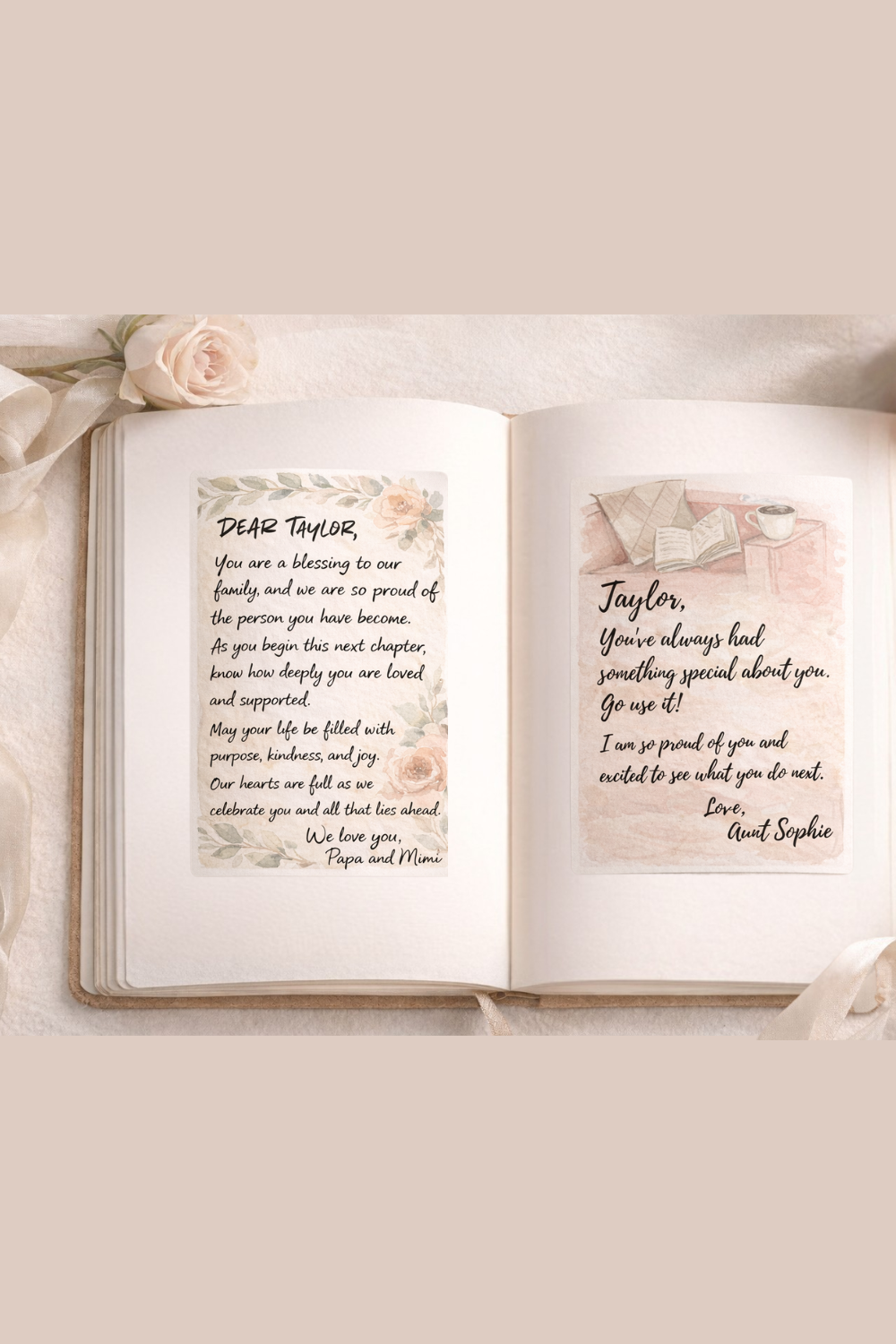 This simple detail transforms graduation messages into something your graduate can return to again and again.
